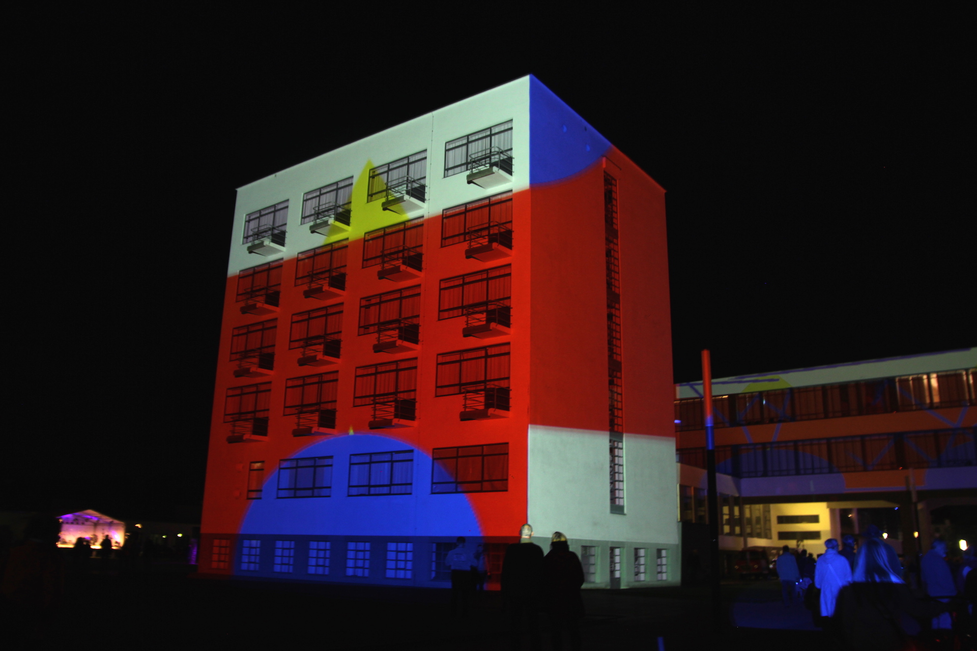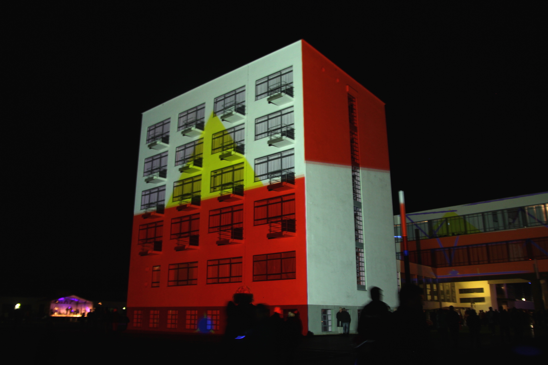 For the Bauhaus Fest 2015 at Bauhaus Dessau, Germany several projection mapping installations were made according to Bauhaus principles of form and colour. These visuals were projected over the iconic Bauhaus buildings whose white facade and cubic design were perfect canvases to "paint" with projection mapping. Taking Wassily Kandiskys concepts of the point, line and plane several different locations at the Bauhaus were projection mapped. These projections ran for several nights during the festival.