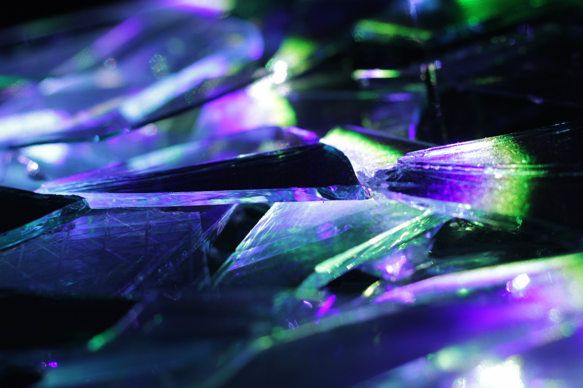 This project shows the transformation of pure white light into many different colours and textures through the process of diffusion. This transformation occurs by taking homogenous, highly concentrated white laser light and shining it through a pile of broken glass and mirrors. This scatters the light into a dazzling array of colours and textures. The work consists of a large pile of broken glass and mirrors and white light from a laser which passes through the glass and and is refracted and diffused throughout the room, splitting the white light into its component colours. The glass also absorbs some of the light giving it a glowing almost phosphorescent effect that produces beautiful shades of blues, greens, pinks, purples and yellows.