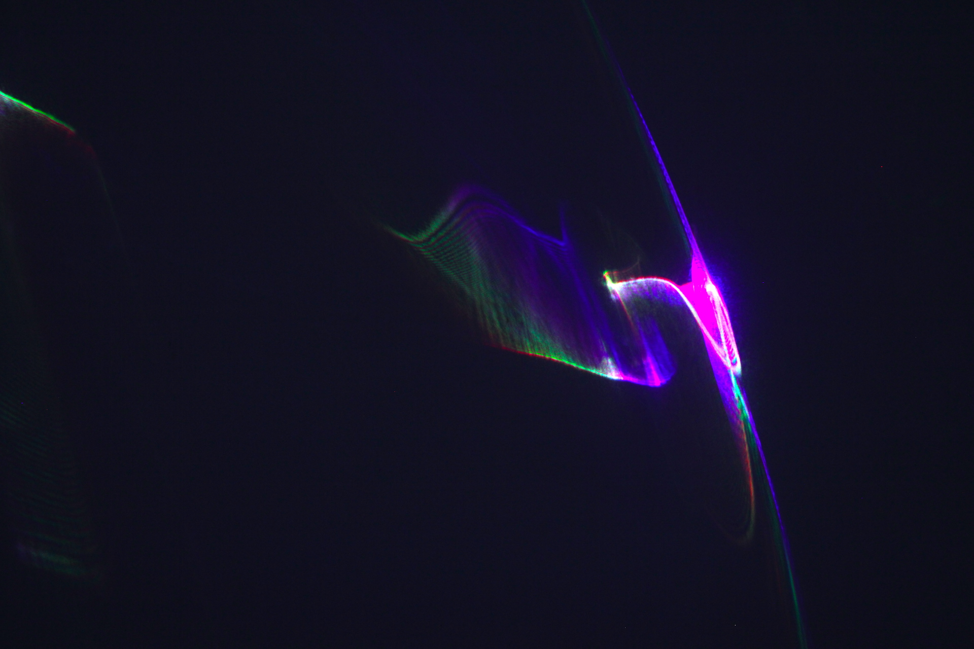 This project uses custom built laser software, created by the artist with Openframeworks.