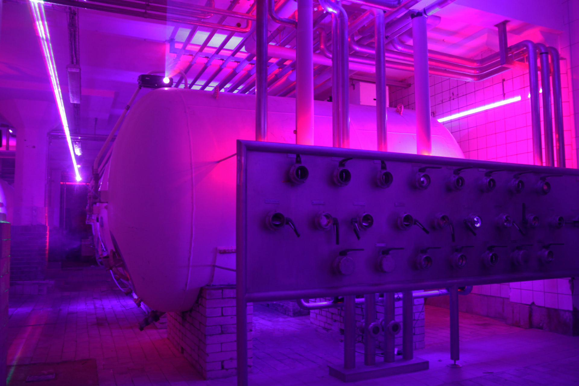 Light installation for the Begehungen Rausch Festival in Chemnitz, Germany. This work was commissioned by the festival to reactivate the space, reimagining it as a futuristic space of light and colour.
