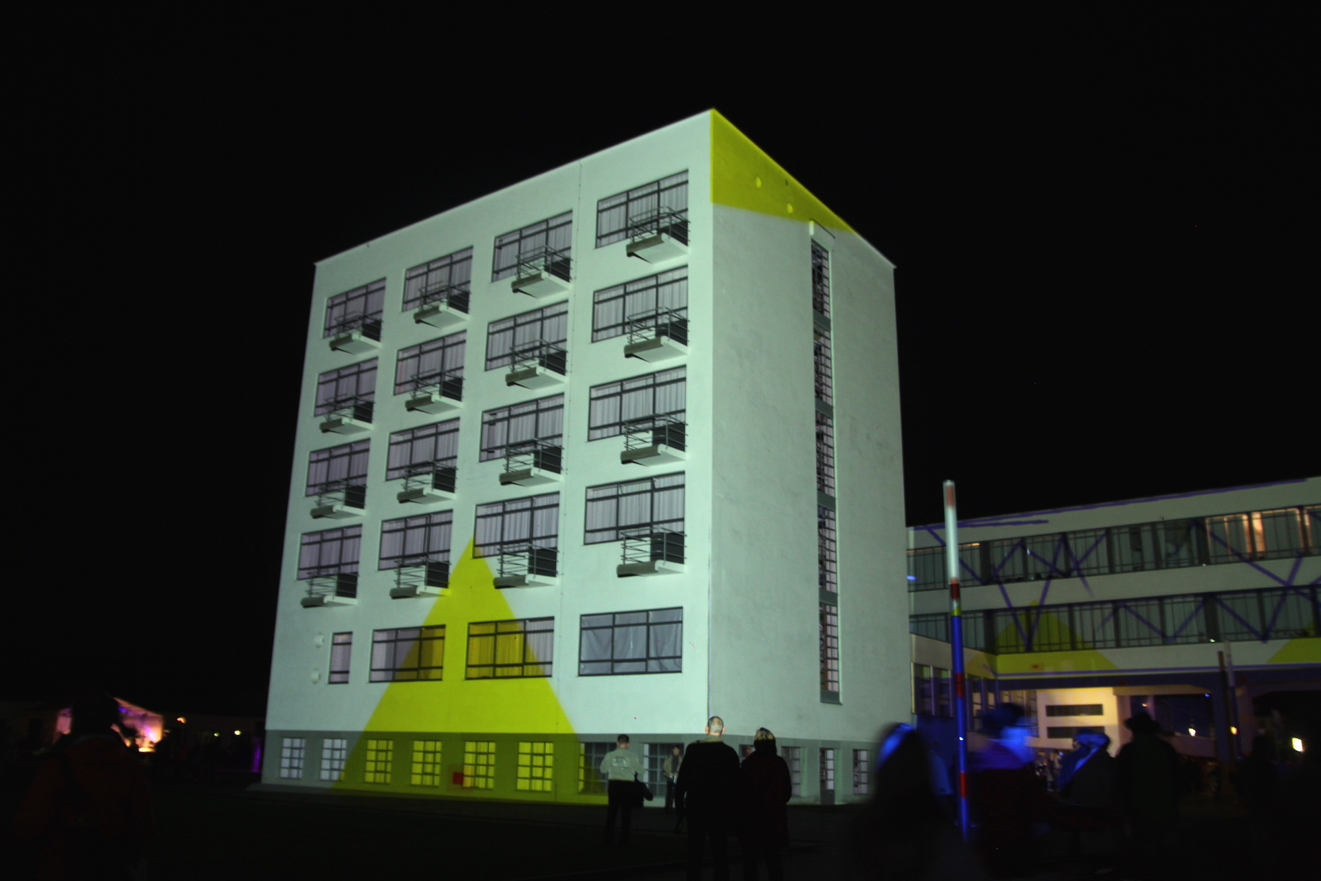 For the Bauhaus Fest 2015 at Bauhaus Dessau, Germany several projection mapping installations were made according to Bauhaus principles of form and colour. These visuals were projected over the iconic Bauhaus buildings whose white facade and cubic design were perfect canvases to "paint" with projection mapping. Taking Wassily Kandiskys concepts of the point, line and plane several different locations at the Bauhaus were projection mapped. These projections ran for several nights during the festival.